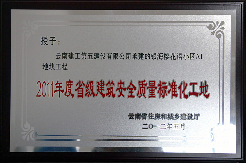 第一直管部承建施工的銀海櫻花語小區(qū)A1地塊工程獲“2011年度省級建筑安全質(zhì)量標(biāo)準(zhǔn)化工地”稱號