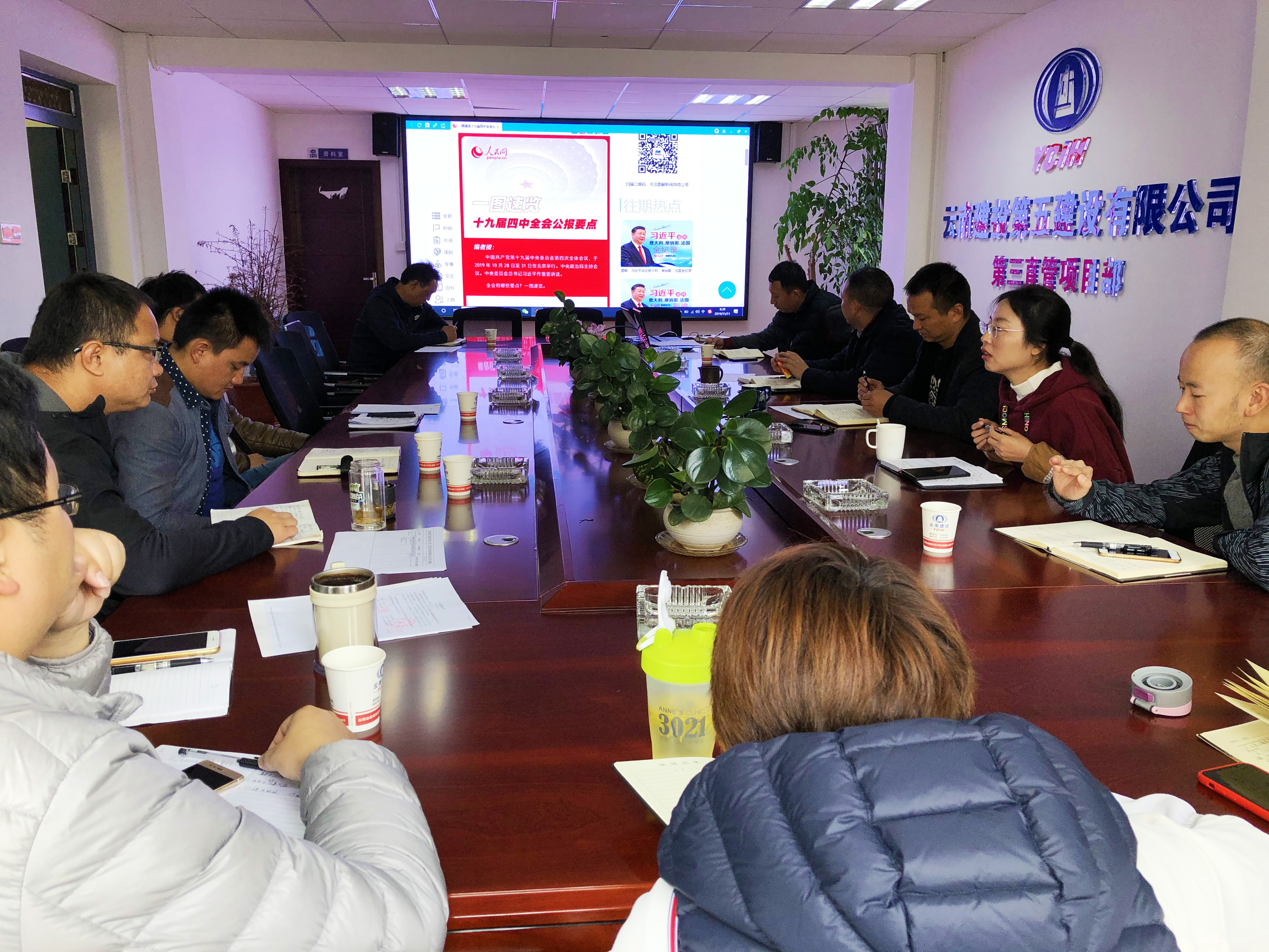 11月9日-12日,第三直管部黨支部分別組織直管部在昆黨員、二線管理人員、車行天下項(xiàng)目部管理人員、五華區(qū)人民醫(yī)院項(xiàng)目部管理人員學(xué)習(xí)黨的十九屆四中全會精神及省紀(jì)委常委會會議精神。 在學(xué)習(xí)專題會上,直管部黨支部書記汪家順帶領(lǐng)大家閱讀了《中共中央關(guān)于堅(jiān)持和完善中國特色社會主義制度推進(jìn)國家治理體系和治理能力現(xiàn)代化若干重大問題的決定》及云南省紀(jì)委在常務(wù)會上提出的《在落實(shí)四中全會精神中找準(zhǔn)位…