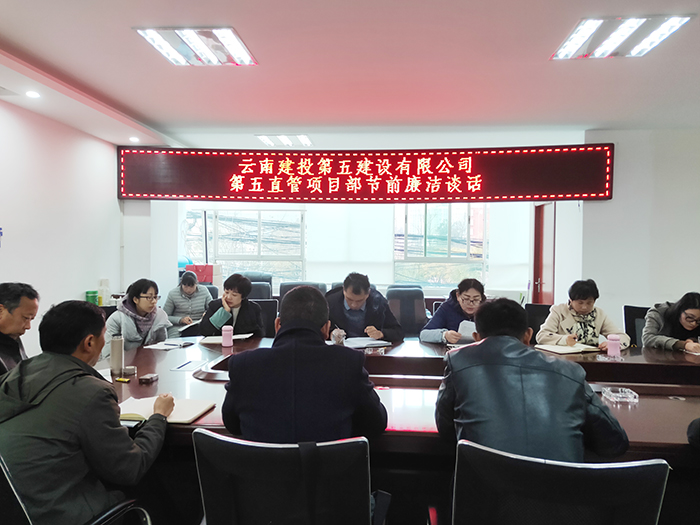 1月2日,第五直管項目部黨支部召開專題會議,開展節(jié)前廉潔談話。由黨支部書記對直管部領(lǐng)導(dǎo)班子成員、部門、項目部主要負(fù)責(zé)人、黨員、二線部門管理人員進(jìn)行了一次集中廉潔談話。會上,黨支部組織黨員集中學(xué)習(xí)了集團(tuán)印發(fā)的《云南省建設(shè)投資控股集團(tuán)有限公司紀(jì)委關(guān)于加強(qiáng)2019年元旦、春節(jié)期間紀(jì)律作風(fēng)建設(shè)的通知》。 黨支部要求黨員干部要進(jìn)一步強(qiáng)化紀(jì)律和規(guī)矩意識,緊繃思想作風(fēng)之弦,始終守住做人、處事、...