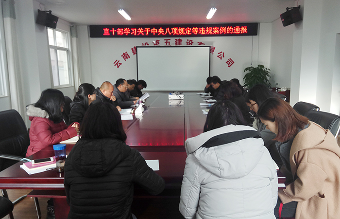 1月15日,第十直管項目部組織在昆領(lǐng)導(dǎo)班子成員、二線管理人員共計17人開展春節(jié)前維穩(wěn)工作會,重點對《省紀委關(guān)于5起違規(guī)發(fā)放津貼或福利典型案例的通報》和《省紀委駐省國資委紀檢組關(guān)于省屬企業(yè)5起違反中央八項規(guī)定精神問題的情況通報》、《中央云南省紀委關(guān)于組織全省開展貫徹落實中央百項規(guī)定精神糾正“四風(fēng)”調(diào)研抽查的情況通報》等文件進行宣讀學(xué)習(xí)。 直管部黨支部書記鄔金華表示,學(xué)...