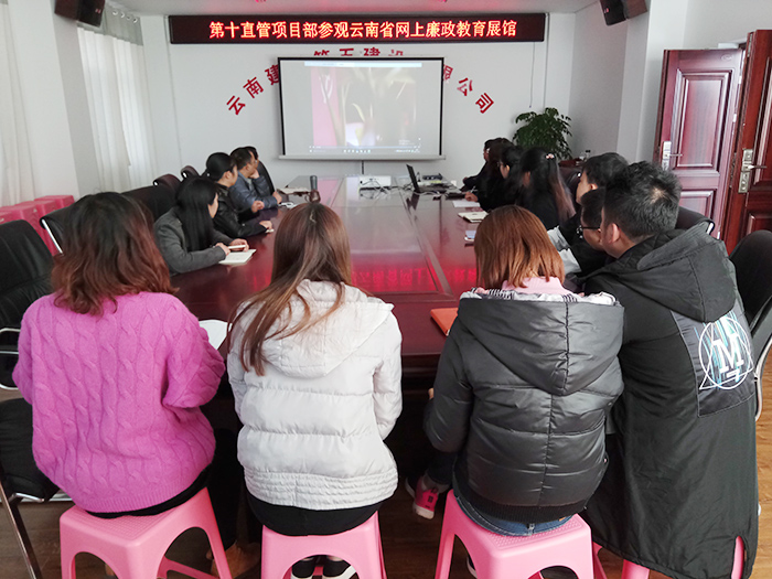 12月12日,公司第十直管項目部組織在昆領導班子成員、在昆黨員及二線職工召開廉政教育學習會。 會上運用投影儀放映的方式瀏覽了云南省網上廉政教育展館進行了集中參觀。云南省網上廉政教育展館由廉政教育基地集群、廉政圖書館、廉政資料庫、廉政影院四大模塊組成。大家集中觀看了展館“廉政影院”里的廉政教育影片《權利的迷途》,影片以云龍縣...