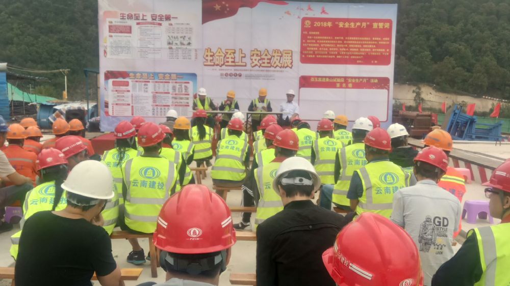 為響應(yīng)公司2018年關(guān)于加強(qiáng)安全生產(chǎn)工作的決策部署,6月4日下午,彌玉高速象山試驗(yàn)段在甸基壩大橋梁場召開以“生命至上,安全發(fā)展”為主題的2018年安全生產(chǎn)月啟動(dòng)儀式。 本次啟動(dòng)儀式由項(xiàng)目部安全總監(jiān)主持,參加人員除了項(xiàng)目部所有管理人員和各施工隊(duì)負(fù)責(zé)人以外,還包括云南彌玉高速公路投資開發(fā)有限公司及監(jiān)理公司安全部的相關(guān)負(fù)責(zé)人。 本次安全生產(chǎn)月活動(dòng)緊緊圍繞“生命至上,安全發(fā)展...