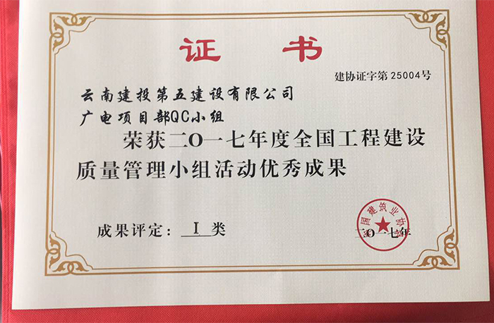 直五部職工獲“2017年全國(guó)工程建設(shè)QC小組活動(dòng)優(yōu)秀推進(jìn)者”稱號(hào)