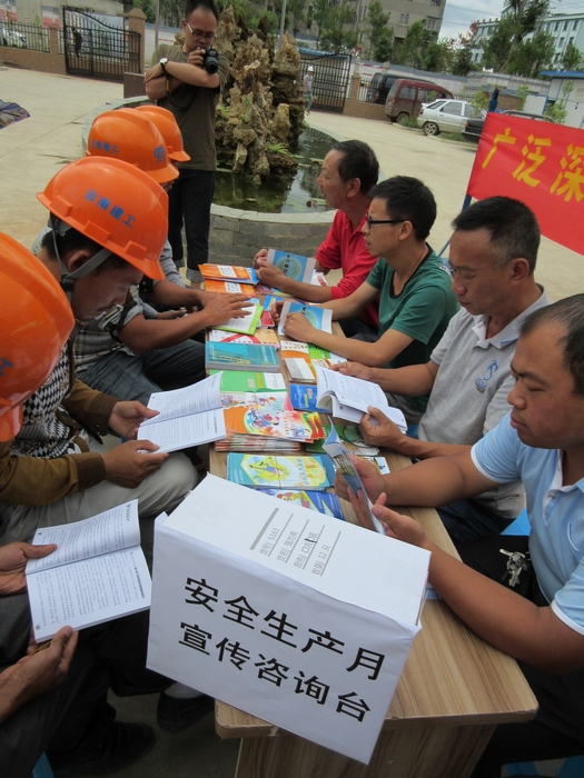 2015年6月16日,第三直管部澄江撫仙湖龍潤(rùn)園一期回遷房建設(shè)項(xiàng)目部組織現(xiàn)場(chǎng)勞務(wù)人員開(kāi)展“安全生產(chǎn)月”宣傳咨詢?nèi)栈顒?dòng)。 項(xiàng)目管理人員、建設(shè)方現(xiàn)場(chǎng)代表、監(jiān)理公司代表在活動(dòng)現(xiàn)場(chǎng)向勞務(wù)工友們提供了安全生產(chǎn)基本知識(shí)咨詢服務(wù),對(duì)日常勞動(dòng)安全防范注意事項(xiàng)、云南建工集團(tuán)施工現(xiàn)場(chǎng)16條禁令、項(xiàng)目常規(guī)危險(xiǎn)源辨識(shí)、項(xiàng)目危險(xiǎn)源警示通報(bào)等安全知識(shí)...