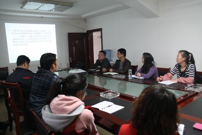 為進(jìn)一步提高直管部管理人員的稅務(wù)知識,加強(qiáng)企業(yè)稅務(wù)的規(guī)范化管理,10月15日下午,五○三直管項目部主管會計師張永華對項目及二線管理人員進(jìn)行了為期半天的《關(guān)于建筑業(yè)日常經(jīng)濟(jì)業(yè)務(wù)的稅務(wù)風(fēng)險及策劃》培訓(xùn)。 培訓(xùn)結(jié)合日常經(jīng)濟(jì)業(yè)務(wù)中遇到的涉稅問題和稅收制度,重點對相關(guān)稅務(wù)風(fēng)險及策劃進(jìn)行了詳細(xì)講解,并通過大量實際的案例,介紹了稅務(wù)策劃...