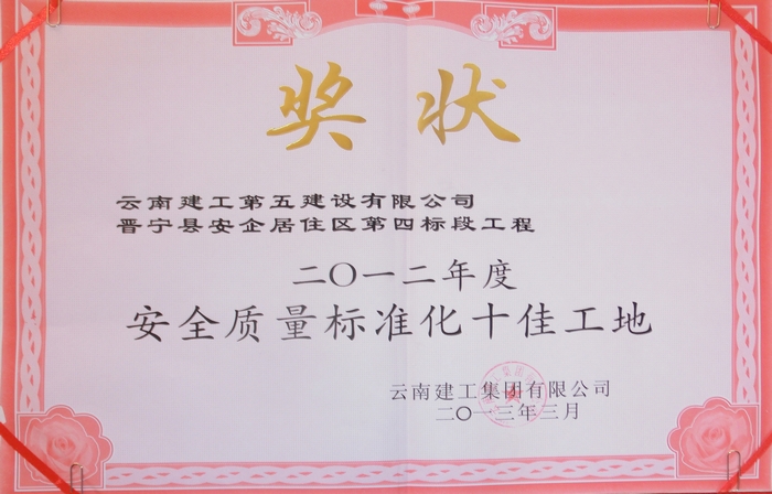 五〇三:晉寧縣安企居住區(qū)第四標(biāo)段工程獲兩項(xiàng)獎狀